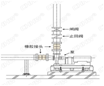 一、請參照下邊的安裝圖例,將撓性單球體橡膠接頭安裝到水泵系統(tǒng)時,如果止回閥位于撓性單球體橡膠接頭之下安裝,那么泵啟動和停止時形成的水壓和水錘效應都將對橡膠接頭產(chǎn)生不良影響。