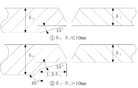 內(nèi)壁錯邊量不宜超過壁厚的10%,且≯2mm;外壁錯邊量≯3mm。