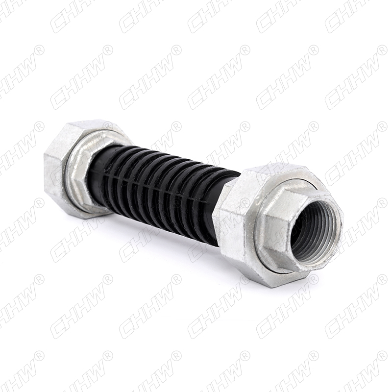 DN20-DN80絲扣連接橡膠軟接頭又稱螺紋可曲撓橡膠接頭,螺紋連接橡膠避震喉等,是一種高彈性、高氣密性,耐介質性和耐氣候性的管道接頭。絲扣橡膠軟接頭利用了橡膠的彈性、高氣密性、耐介質性、耐候性和耐輻射性等有點,采用高強度、冷熱穩(wěn)定性強的聚酯簾子布斜交與之復合后,經過高壓、高溫模具硫化而成。內部致密度高、能承受較高壓力、彈性變形效果好。減少震動、降低噪音、伸縮性好,使用方便。如(上圖)所示;