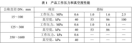5.6可曲撓橡膠接頭的工作壓力和真空度應(yīng)符合CJ/T 208的規(guī)定(見(jiàn)表1);試驗(yàn)壓力和爆破壓力分別應(yīng)不小于工作壓力的1.5倍和3倍。