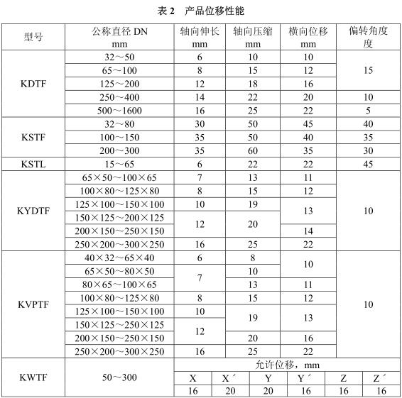 在表1規(guī)定的工作壓力下,可曲撓橡膠接頭的允許位移應(yīng)符合表2的規(guī)定。