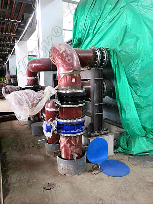 - 安裝接頭:小心安裝橡膠軟接頭,避免密封面破損,根據(jù)對口法蘭水線位置上下左右平均對稱,確保其位置正確。
